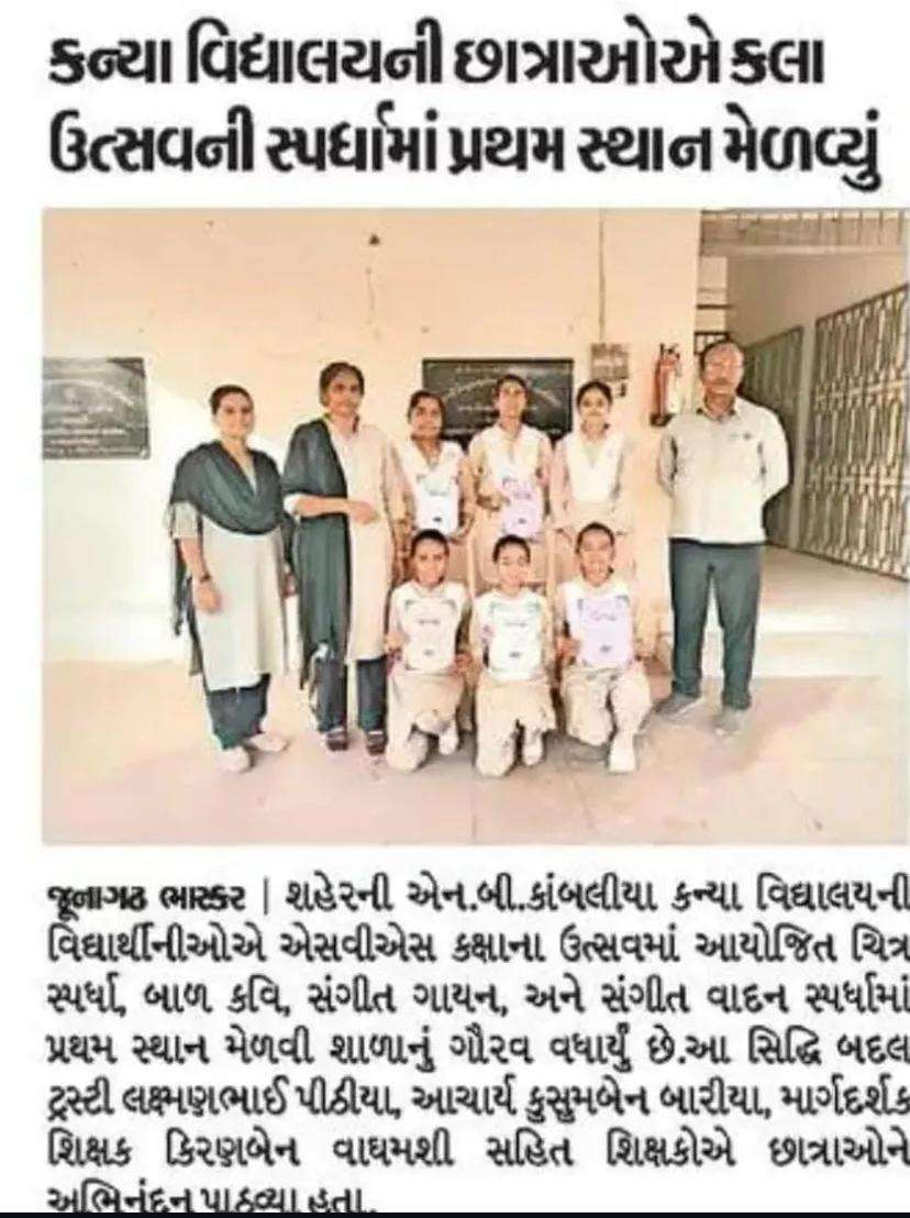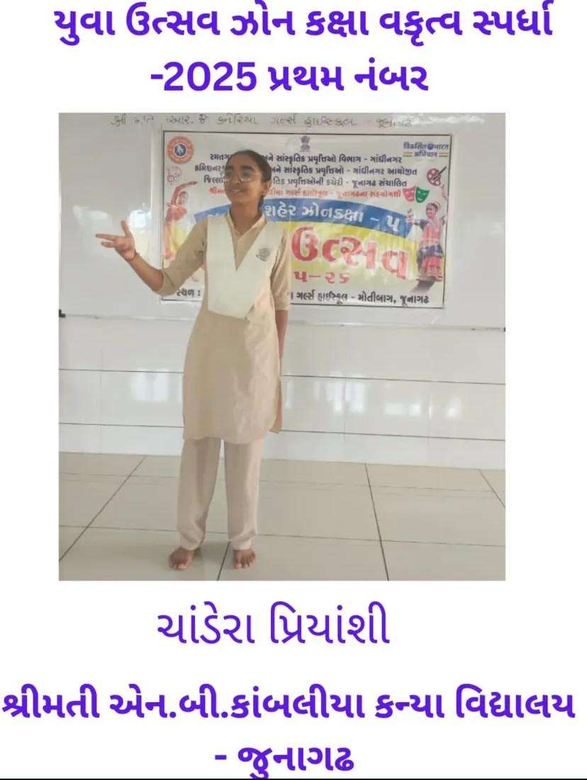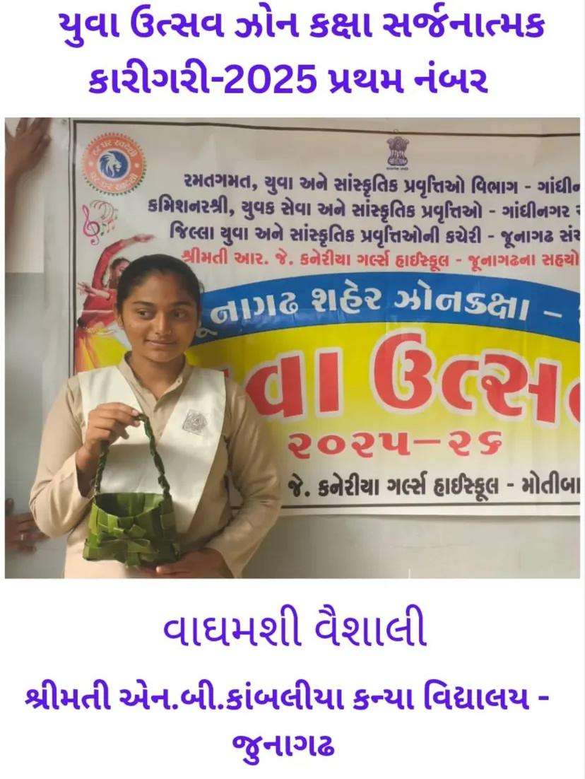 રાજ્ય કક્ષાએ કલા ઉત્સવ બા કવિ સ્પર્ધામાં તૃતીય ક્રમાંક વિજેતા