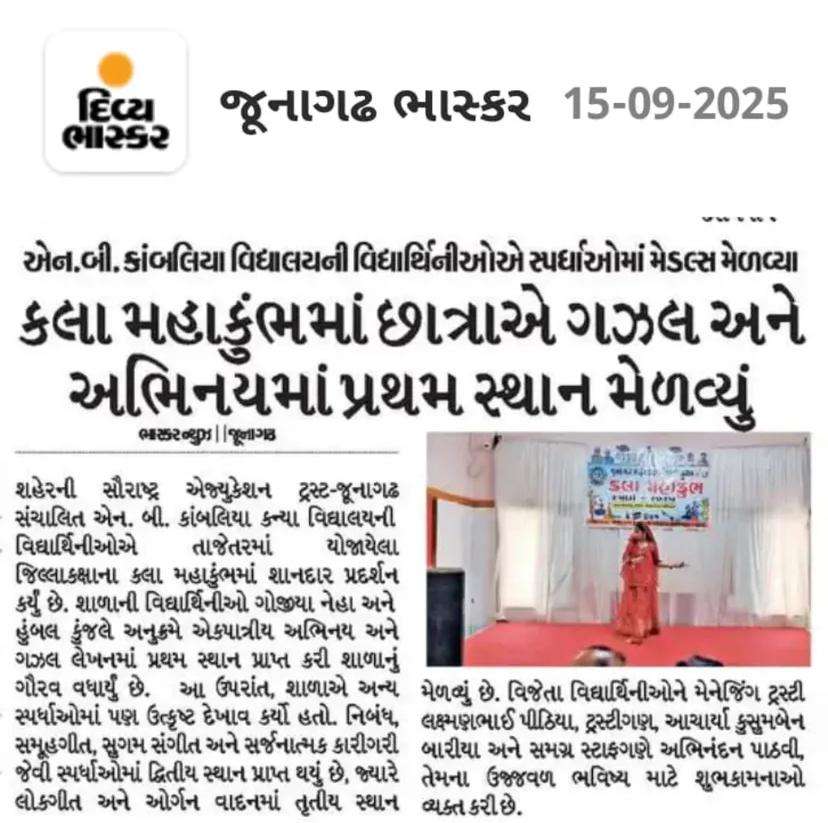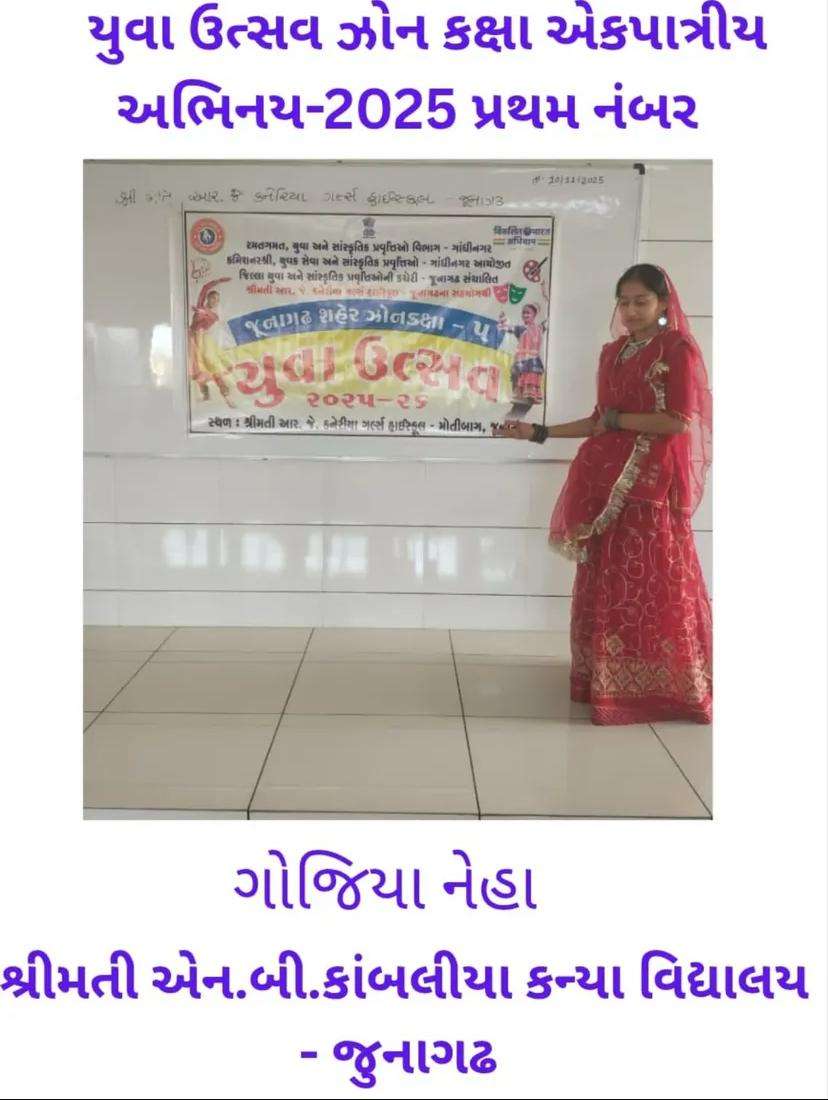 રાજ્ય કક્ષાએ કલા ઉત્સવ બા કવિ સ્પર્ધામાં તૃતીય ક્રમાંક વિજેતા