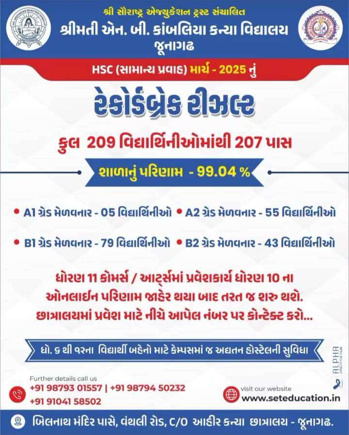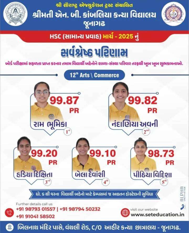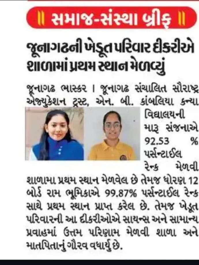 હોસ્ટેલમાં રહી અભ્યાસ કરતા ખેડૂત પરિવારોની દીકરીઓ એ મેળવ્યું શ્રેષ્ઠ પરિણામ